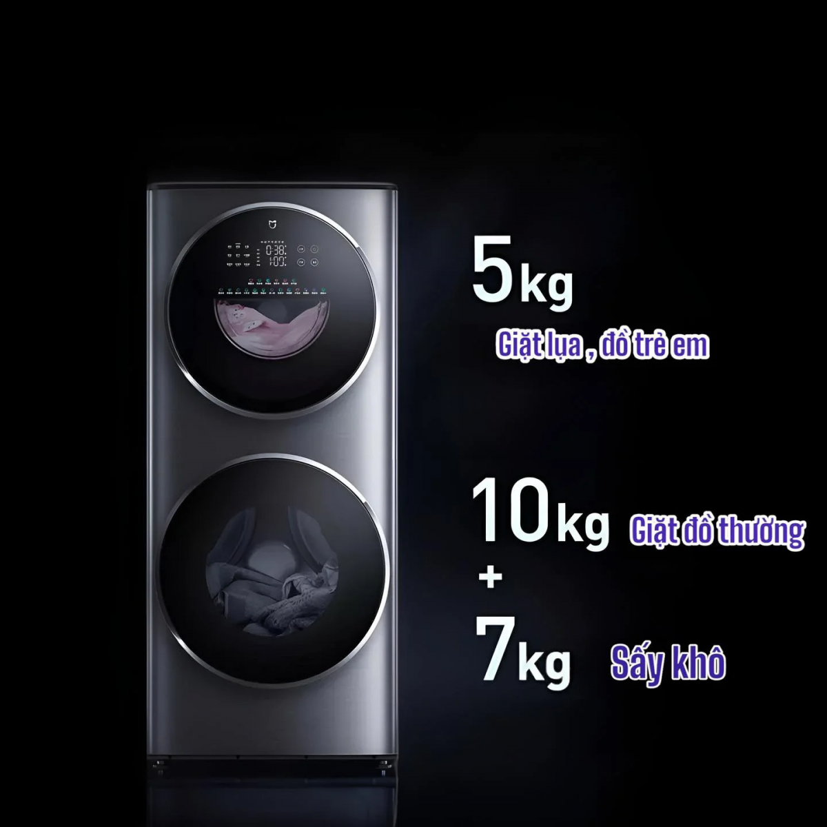 Máy Giặt Sấy Xiaomi Mijia 2 Tầng XM21 Giặt 15Kg Sấy 7Kg – Ion bạc khử trùng, sấy biến tần BLDC