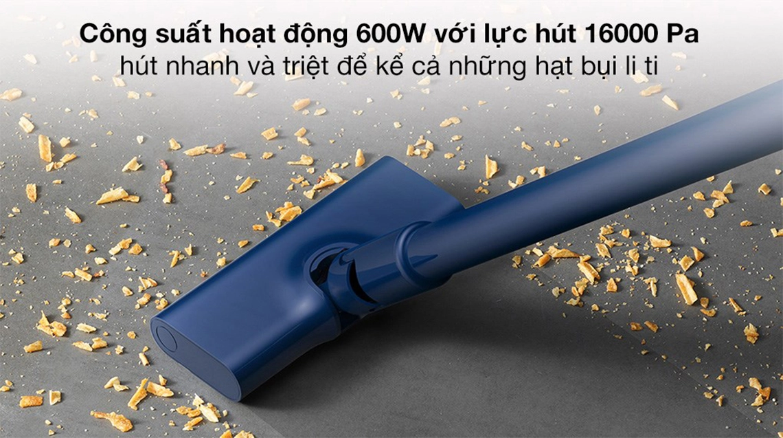 Máy hút bụi cầm tay Deerma DX1000 với công suất hoạt động 600W, 1 chế độ với lực hút 16000 Pa giúp hút nhanh, triệt để kể cả những hạt bụi li ti trong không khí