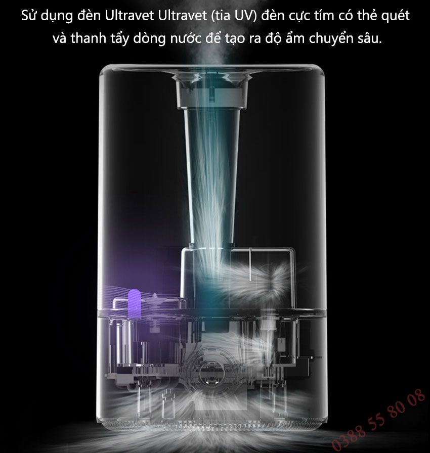 Kênh dẫn nước tích hợp đèn UV với khả năng lọc sạch sâu nguồn nước được tinh khiết và an toàn hơn. Cụ thể sau khi nguồn nước đi vào kênh nước sẽ đi vào khu vực chiếu xạ đèn UV đầu tiên và trải qua quá trình tinh lọc 360 độ, sau đó chảy đến khu vực phun sương để đảm bảo rằng hơi sương máy tạo ẩm phun ra luôn được tinh khiết và trong lành nhất.