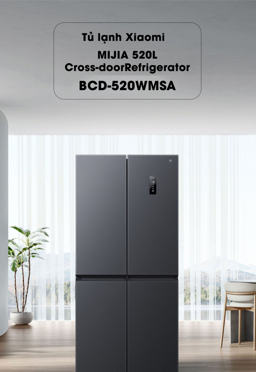 Tủ lạnh 4 cánh Xiaomi Mijia 520L – Ion bạc khử khuẩn, cấp đông nhanh chóng