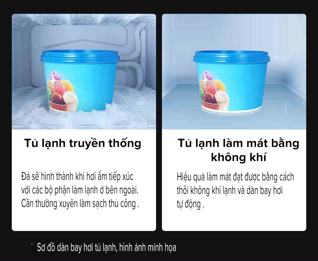Nhờ hệ thống quạt làm lạnh đa chiều thông minh. Nó đảm bảo phân phối luồng khí lạnh đều cho từng ngăn tủ, giúp bảo vệ thức ăn của bạn tốt hơn.