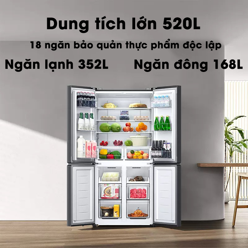 Tủ lạnh Xiaomi 520L mới này có dung tích rất lớn, cùng với rất nhiều ngăn chứa ( có tới 18 ngăn chứa khác nhau ) nên nó có rất nhiều không gian lưu trữ thực phẩm.